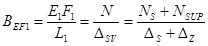 где п и li - количество и длина участков стыка с одинаковыми деформативными свойствами по длине; υ - коэффициент упруго пластических деформаций бетона; EBi - начальный модуль упругости бетона; АBi и ASi - площадь бетона и продольной арматуры; α - коэффициент приведения, равный отношению модулей упругости арматуры и бетона.