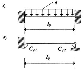 2.3.7. В направлении вдоль пролетов плит сопряжение перекрытия с колонной в большинстве случаев принимается шарнирным. Частичное защемление колонн в перекрытии проявляется по линии расположения связевых плит-распорок, имеющих продольные сварные соединения (рис. 5, а) и при устройстве перекрытия из ребристых плит, привариваемых по опорным площадкам к закладным деталям ригеля (рис. 5, б). Механизм возникновения сопротивления при повороте опорного сечения плит относительно ригеля и колонны аналогичен описанному в п.п. 2.3.3 - 2.3.4 (рис. 3, в).
