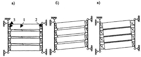 Рис. 11. Сквозные связевые панели с треугольной (а) и портальной (б) металлической решеткой