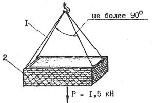 1 - строп четырехветвевой; 2 - контейнер с плитами