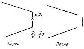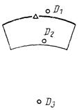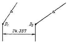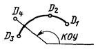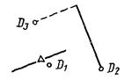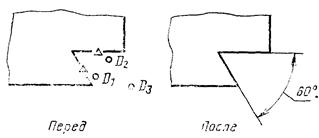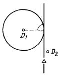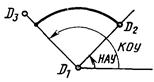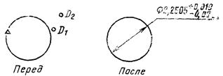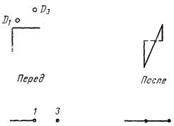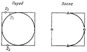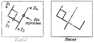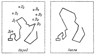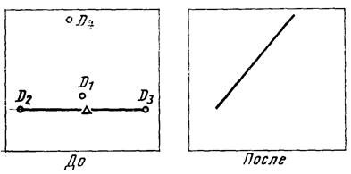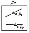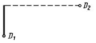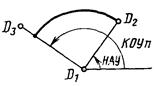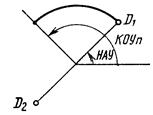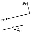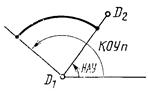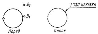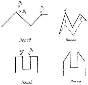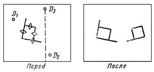 При использовании модификатора ТП выбирается подчищаемый объект в D1 Точка в текущей рабочей проекции, ближайшая к D1 будет подчищена первой. Затем выбирается пересекающий объект D2. Точка пересечения, ближайшая к D2 определяет новую конечную точку. |