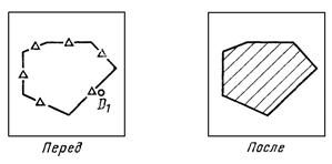 Глагол ПДЧ используется в тех случаях, когда требуется изменить положение конечных точек объекта. Такими объектами могут быть: ДУГ - дуга ОКР - окружность ЕЛЛ - эллипс ЗАК - закругление ЛИН - линия ГИП - гипербола ПАР - парабола СПЛ - сплайн Подчищаемые точки объектов могут быть либо в плоскости, либо в трехмерном пространстве. В первую очередь подчистка выполняется в том конце объекта, который лежит ближе к точке идентификации объекта. Для определения новой конечной точки опускается перпендикуляр из указанной точки в трехмерном пространстве на объект (или на его расширение, продолжение). Затем эта точка индицируется маленьким знаком (+). Если же требуется подчистить второй конец, просто специфицируют вторую точку для выявления новой концевой точки. |