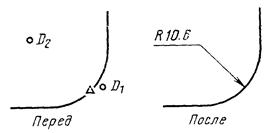 Пример: Ввести закругление с подчисткой (стиранием выступающих линий), радиусом 10 мм.