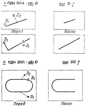 Система переходит от одного объекта к другому после выдачи символа С (следующий), который должен следовать за символом «ВК». После нахождения объекта с помощью сканирования, система позволяет выполнять с этим объектом любые допустимые графические операции. |