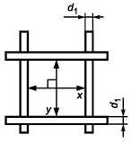 d1 - номинальный диаметр проволоки; х - горизонтальное направление измерения размера ячейки, у - вертикальное направление измерения размера ячейки