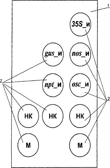 промотор 35S, гены gus и nptII и