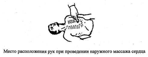 (05) при отсутствии пульса, расширении зрачков проводить наружный массаж сердца;