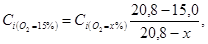 Приведение к концентрации кислорода, равной 15 %, выполняют по формуле