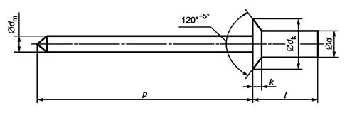 Размеры заклепок приведены на рисунке 1 и в таблице 1.
