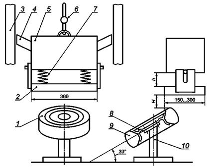 Ж.3.1.2 Стенд для испытаний имеет свободно вертикально падающий под действием силы тяжести комплект грузов. Размеры ударной поверхности - не менее 152´380 мм. Острые кромки ударника должны быть притуплены фасками или галтелями.