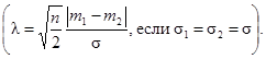 b) Гипотеза s12 ³ s22, λ = s2/s1.