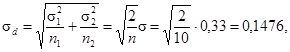 Потребителю известно, что среднее разрывных усилий различных партий может изменяться, но дисперсия разрывных усилий в партии является постоянной со стандартным отклонением s = 0,33.