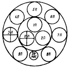 10.11. От распределительных коробок абонентские провода прокладывают в помещения абонентских пунктов. При этом у распределительной коробки абонентские провода должны иметь запас и быть выложены так, как показано на рис. 10.7. С левой стороны от кабеля абонентские провода подводят к клеммам пар коробки с номерами 1, 6, 0 и 5, а с правой - с номерами 3, 8, 4 и 9. Пары с номерами 2 и 7 должны быть заняты проводами с правой или с левой стороны в зависимости от местных условий. Перекрещивание однопарных проводов под коробкой не допускается.