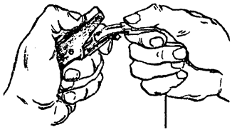 10.21. Провода ТРП (ТРВ) следует крепить к стенам деревянным, оштукатуренным, кирпичным и шлакоблочным, гипсолитовым и т.п. стальными гвоздями диаметром 1,5 мм длиной 15 или 20 мм, забиваемыми в промежуток между жилами (рис. 10.9,а). При этом необходимо следить, чтобы гвозди не повреждали изоляцию жил. Допускается также крепление проводов скобами из стальной проволоки диаметром 2 мм (рис. 10.9,б).