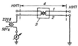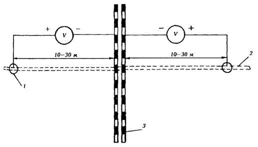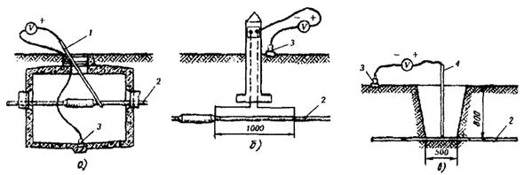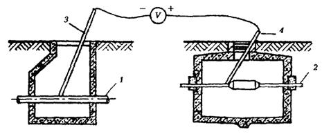 1 - провод ПР или ПРЖ сечением 6 - 10 мм2; 2 - заземлитель; 3 - насыпной грунт; 4 - основной грунт
