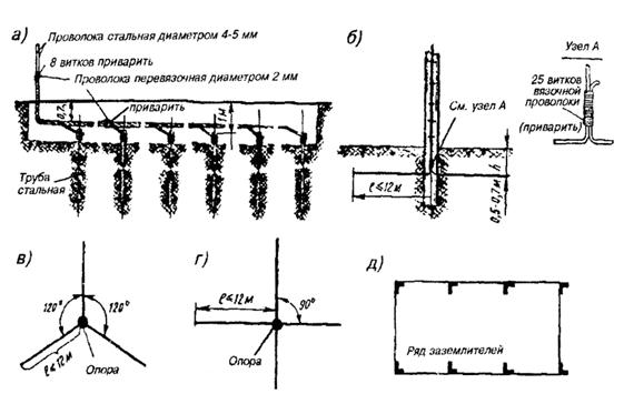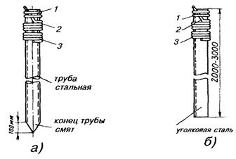 18.59. Выбор типа заземлителя для устройства заземления у абонента производят в зависимости от местных условий. В городе для заземления используют стальные вертикальные электроды - трубы или уголки. Протяженные проволочные заземлители оборудуют в сельской местности.