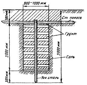 Рис. 18.13. Конструкция котлована при обработке грунта солью для установки заземлителя из уголковой стали