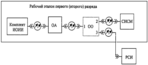 6.5.1 Проверка погрешности в рабочем диапазоне измеряемой мощности [8] проводится с помощью рабочего эталона первого или второго разряда на всех длинах волн калибровки по схеме, приведенной на рисунке 1, методом сличения с СИСМ рабочего эталона по методике, изложенной в руководстве по эксплуатации рабочего эталона.