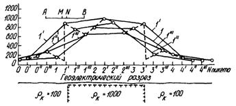 Справа над чертой - номер скважины, под чертой - глубина верхней поверхности ММП, м; прочерк обозначает сливающиеся ММП |
