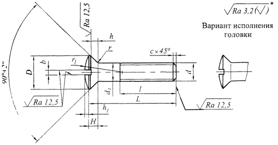 Настоящий стандарт распространяется на винты с полупотайной головкой (угол 90°) (далее - винты) и устанавливает их конструкцию и размеры.