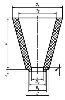 На воронке в верхней ее части цилиндрический поясок может быть заменен срезом под углом 90° к образующей наружного конуса до середины толщины стенки.