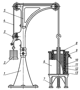 6 - электрическая печь с нихромовым нагревателем; 7 - стол; 8 - крышка; 9 - обмотка;