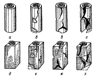 Термическую стойкость изделия считают удовлетворительной, если после внезапного нагрева от температуры окружающей среды до 800 °С с выдержкой в течение 15 мин и последующего охлаждения оно не распадается на части (рисунок Б.2 а, б, в, д, е, ж), несмотря на наличие трещин, шелушения и сколов по торцам. Термическую стойкость изделия считают пониженной, если после испытания оно распадается на части (рисунок Б.2 г, з).