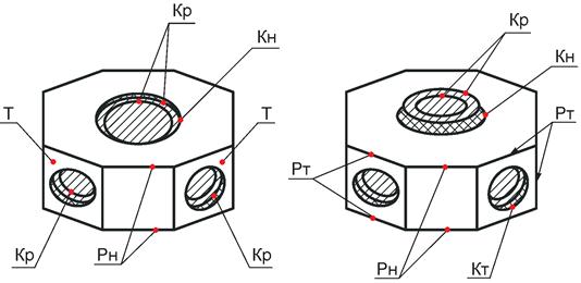 В.1 Условные обозначения рабочих и нерабочих поверхностей, кромок и ребер приведены в таблице В.1 и на рисунках В.1 - В.6.