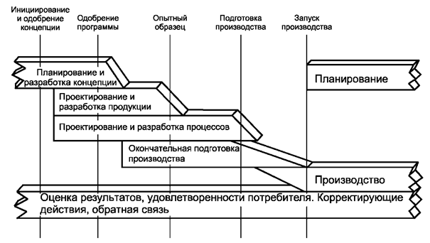Процесс планирования, разработки, подготовки производства и осуществление производства (далее APQP-процесс) а/к разбит на этапы с четкими требованиями к входам и результатам на выходе для каждого этапа.