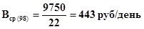 Среднемесячную выработку (Вср(98)) рассчитываем по формуле 3: