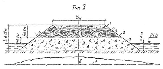 Рис. 8.11. Поперечные профили земляного полотна на легкоосушаемых грунтах: