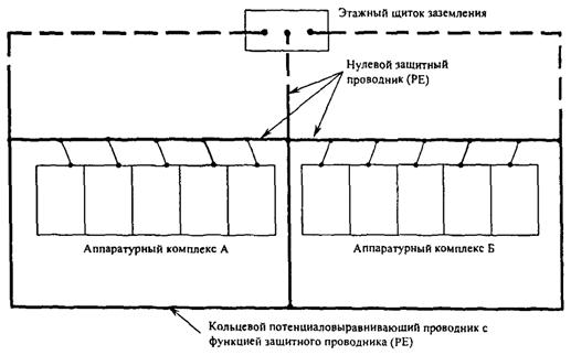 3.24 Аппаратурный комплекс (System Block) - набор оборудования (набор групп оборудования), объединенного по какому-либо признаку, корпуса которого объединяются в самостоятельную систему выравнивания потенциалов (объединение чаще всего проводится по признаку общей функциональной принадлежности: системе передачи, контрольно-измерительному комплексу, локальной компьютерной сети).