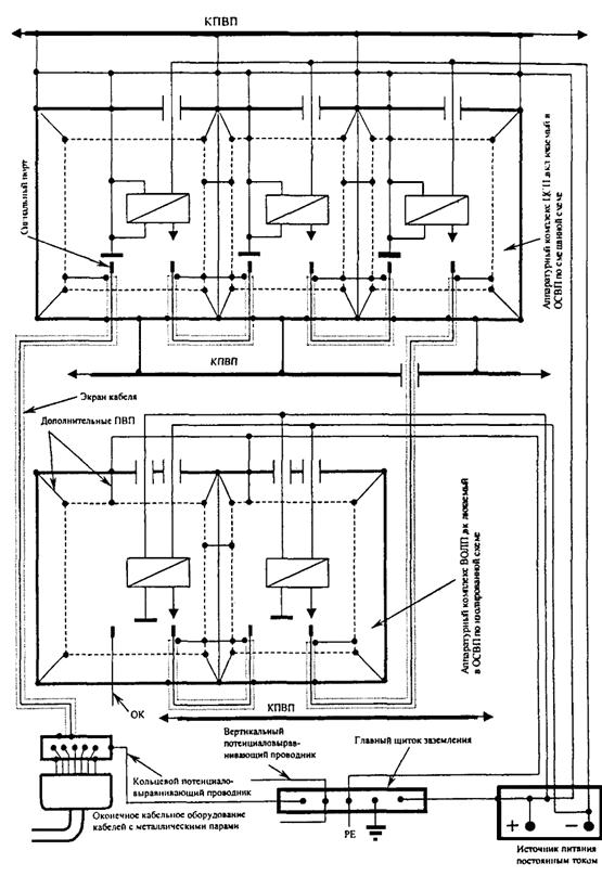 Рекомендуется питание аппаратуры ВОЛП устраивать отдельным трехпроводным фидером с распределительного щитка при изолированной системе включения аппаратурного комплекса в ОСВП. |