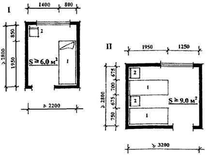 Рис. П.1. Спальные комнаты на (I) и на 2 (II) места.