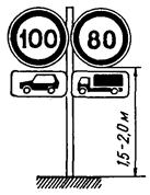 ** Ограничение скорости для легковых автомобилей и междугородных автобусов.
