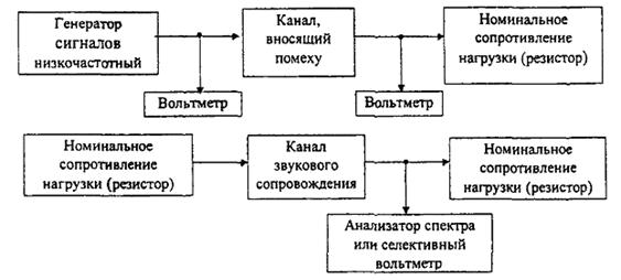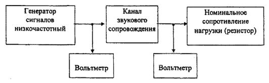 На вход канала подают измерительный сигнал с частотой 1000 (800) Гц и уровнем на 20 дБ ниже номинального значения максимального уровня. Измерение уровней на входе и выходе канала осуществляют параллельно подключенными к ним вольтметрами с высоким входным сопротивлением.