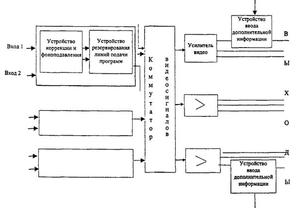 - коммутации по одному или нескольким направлениям сигналов телевизионных программ, поступающих в аппаратную по соединительным линиям.