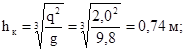к - данные величины берутся при критической глубине;