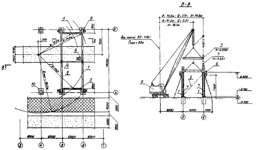 Схема монтажа конструкций здания для II варианта приведена на листах 24, 25.