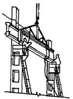 4.1. Операции по монтажу подкрановой балки выполняют в следующем порядке: подготовляют опорные площадки для укладки балки на колонны; стропят балку; поднимают, укладывают и выверяют ее; крепят балку к колонне, сваривая закладные детали; расстроповывают балку.