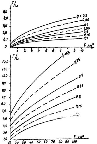 где ф - коэффициенты, учитывающий форму водосборов и определяемый по графикам, рис. 4;