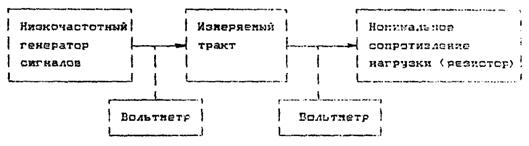 На вход тракта (звена) подают измерительный сигнал с частотой 1000 (800) Гц и уровнем на 20 дБ ниже номинального значения максимального уровня. Измерение уровней на входе и выходе тракта (звена) осуществляют параллельно подключенными к ним вольтметрами с высоким входным сопротивлением.
