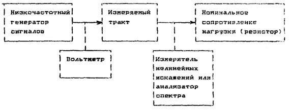На вход тракта (звена) подают измерительный сигнал с номинальным максимальным уровнем. Коэффициент гармоник генератора не должен превышать 0,3 от минимального значения коэффициента гармоник измеряемого тракта. Для измерений коэффициента гармоник должен быть использован анализатор спектра или измеритель гармоник. При использовании в звеньях тракта цифровой аппаратуры для измерения коэффициента гармоник применяется только анализатор спектра.