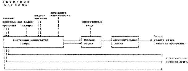 в) тракт звука видеоцентра - комплекс технических средств для подачи на модулятор сигнала звукового сопровождения местной программы, сформированного путем коммутации и микширования звуковых сигналов от нескольких источников (в том числе микрофона);