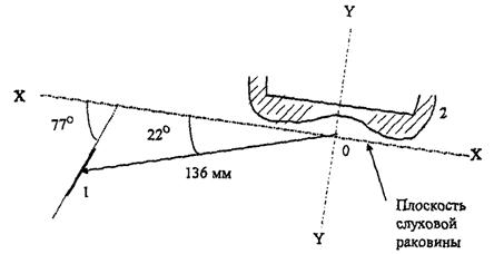 3.17 Опорная точка уха (ОТУ) - точка, расположенная на входе слухового канала человека, которая определяется как центр плоскости слуховой раковины телефона, прижатой к уху.