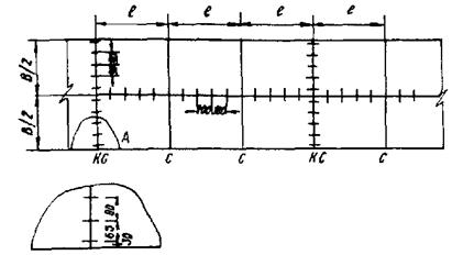 6.70. Рабочий шов коробления устраивают с помощью шаблона (рис. 6) из двух досок толщиной 30 мм. Высота шаблона должна быть равна толщине покрытия. На вертикальной поверхности шаблона имеются отверстия для стальных стержней анкеров и выступ для образования в торце плиты паза цилиндрической формы радиусом 20 см. Вертикальную поверхность покрывают битумной эмульсией слоем 1 мм для облегчения снятия шаблона перед началом бетонирования.