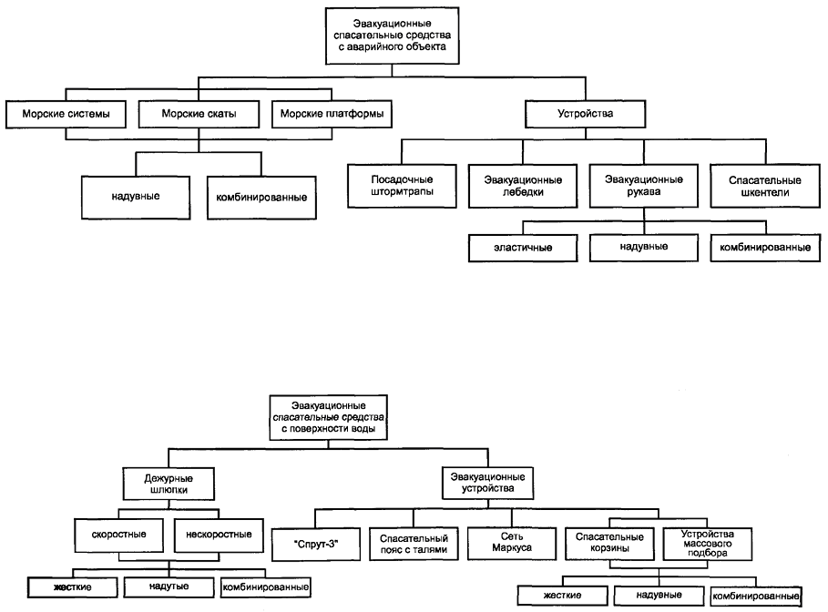 4.4 Эвакуационные спасательные средства с аварийного объекта подразделяют на: