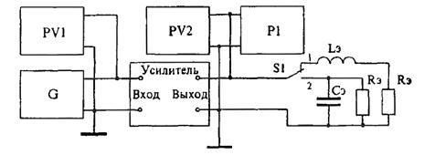 G - генератор сигналов низкочастотный, PV1, PV2 - вольтметр, P1 - измеритель нелинейных искажений, Р2 - осциллограф, Lэ - индуктивная составляющая комплексной нагрузки; Cэ - емкостная составляющая комплексной нагрузки; Rэ - активная составляющая комплексной нагрузки