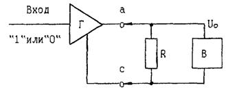 При передаче сигнала, соответствующего логическому состоянию «1» для цепей категории «данные» или состоянию «ВЫКЛЮЧЕНО» для цепей категории «синхронизация» и «управление», потенциал в выходной точке а должен быть отрицательным относительно потенциала в точке с.