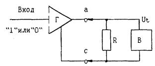 При передаче сигнала, соответствующего логическому состоянию «0» для цепей категории «данные» или состоянию «ВКЛЮЧЕНО» для цепей категории «синхронизация» и «управление», потенциал в выходной точке а должен быть положительным относительно потенциала в точке с.